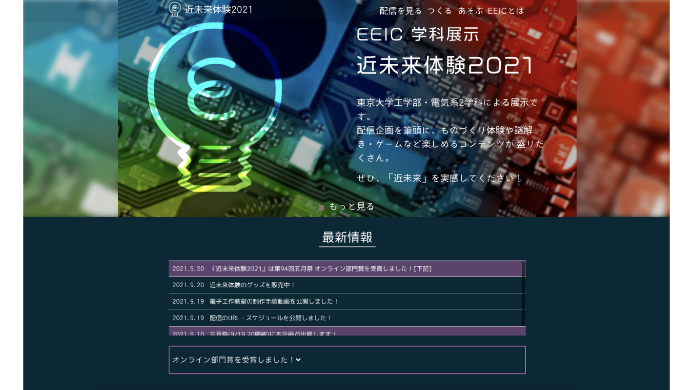 所属していたEEIC(東京大学工学部 電気電子・電子情報工学科)の学園祭展示に合わせて制作したウェブサイトです。